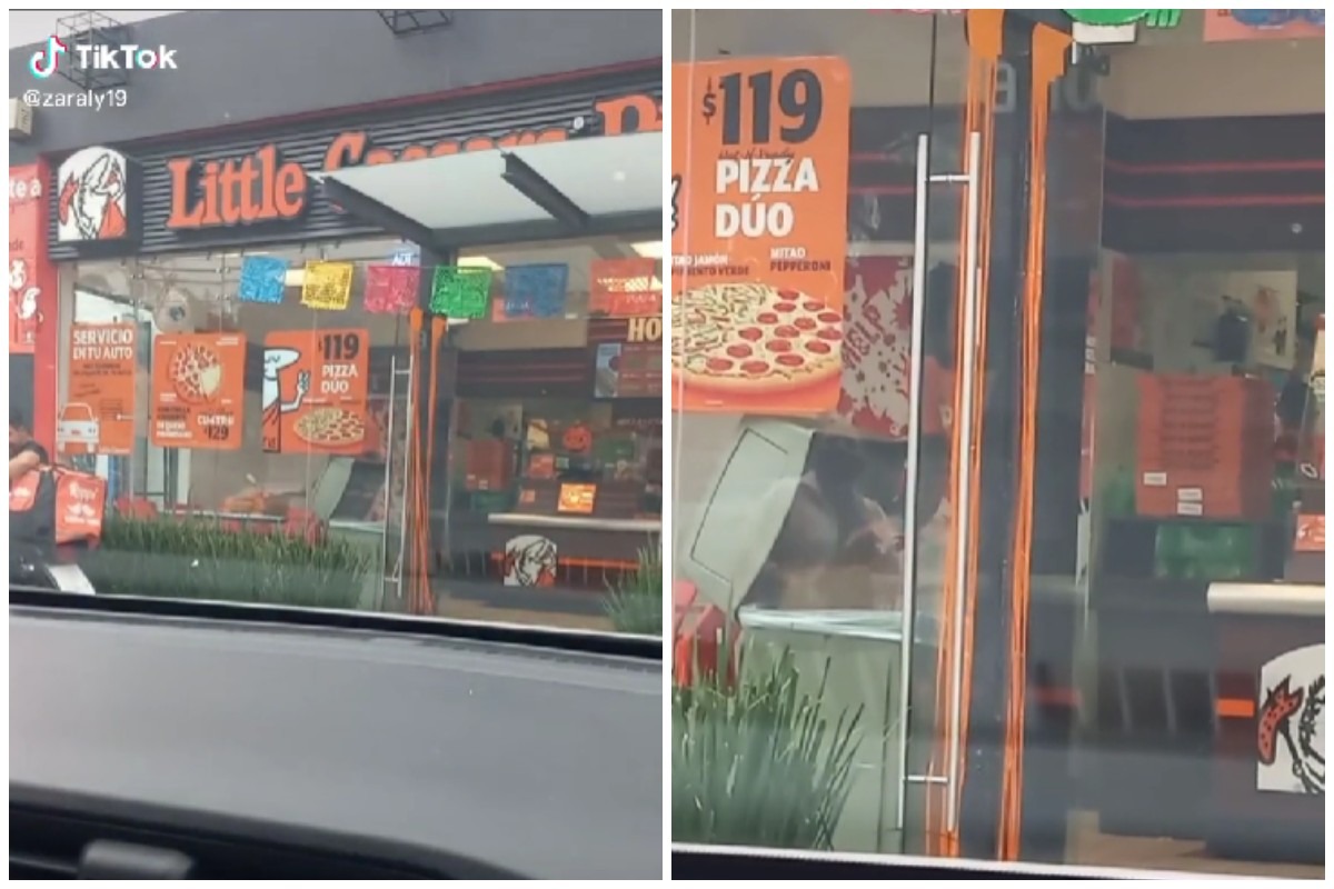 El material de la usuaria demostraría que ella se encontraba afuera de las instalaciones del local viendo la extraña conducta que tenía un muchacho, el mismo que fue visto buscando cajas de pizzas en la basura para retirarlas de ahí. Este clip revela que este joven logró sacar del tacho una gran fila de empaques que fueron botados por los comensales.