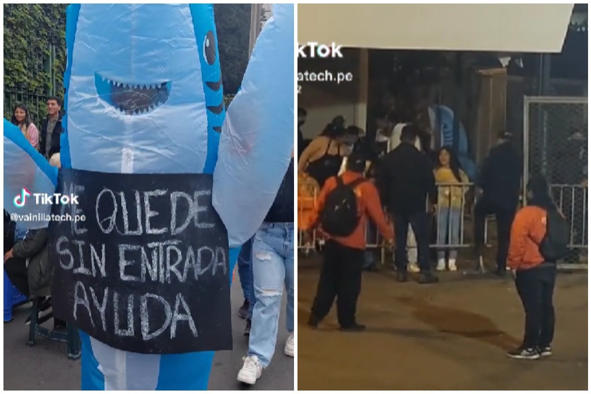 La publicación que se hizo viral rápidamente en el ciberespacio muestra que un muchacho vestido como tiburón, haciendo alusión a una de las canciones del artista, estaba buscando una entrada con urgencia para ingresar al estadio, puesto que, había sido engañado al conseguir un boleto sin valor a las afueras del local.