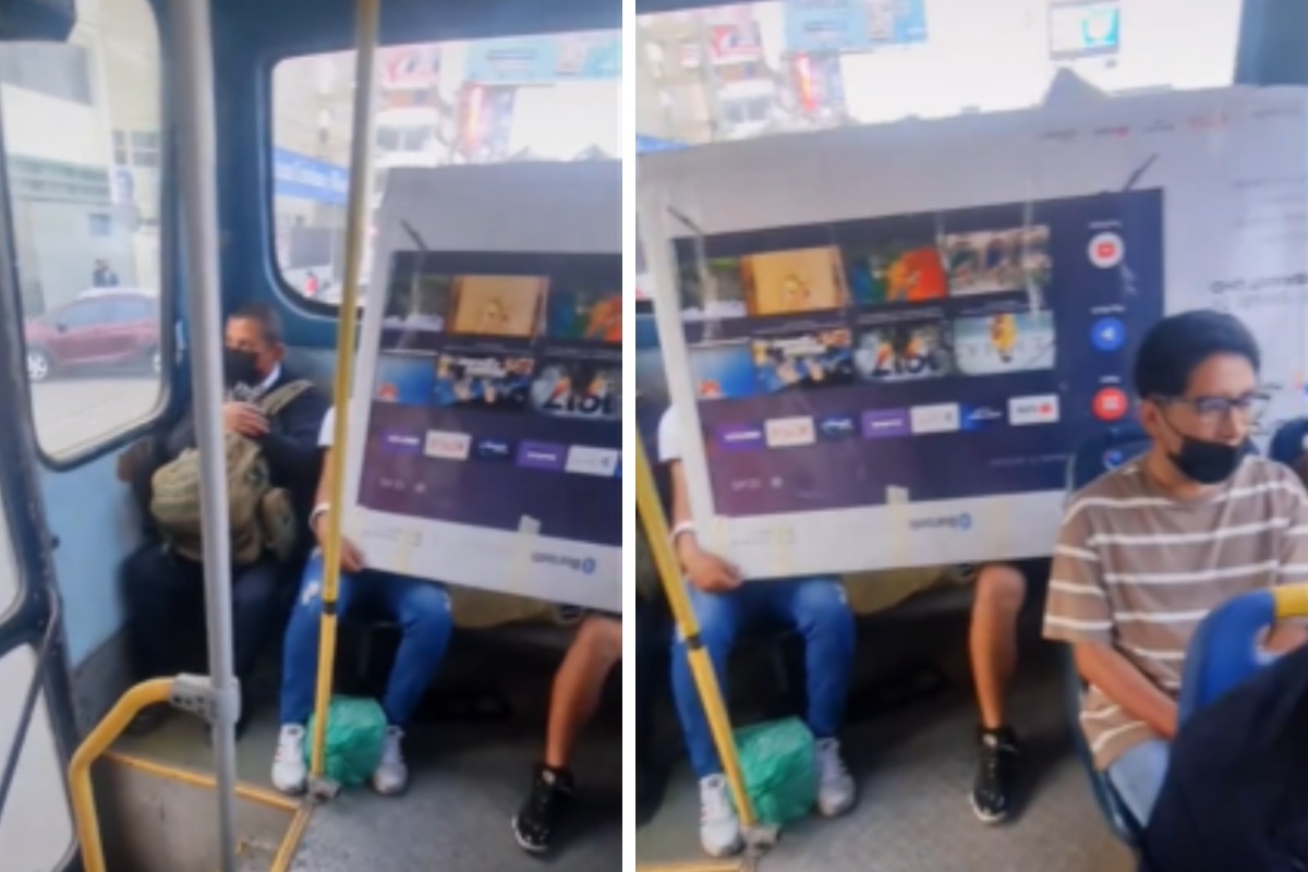 En ocasiones buses de uso público nos presenta traslados más que alucinantes, en esta ocasión un hombre no tuvo de otra que llevar su enorme Smart TV recién comprando en un bus comercial, probablemente para economizar gastos, sin imaginar que se convertiría en viral.