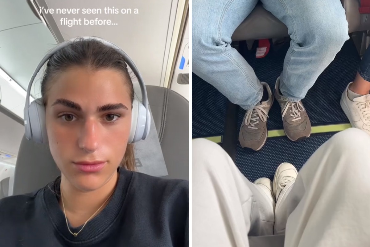 “Nunca había visto esto en un vuelo antes... ¿asientos uno frente al otro?”, indicó en la descripción del video que ya superó las 5 millones de reproducciones en la plataforma y en el que claramente se la observa muy nerviosa con las piernas juntas e intentando esquivar la vista con los otros extraños.