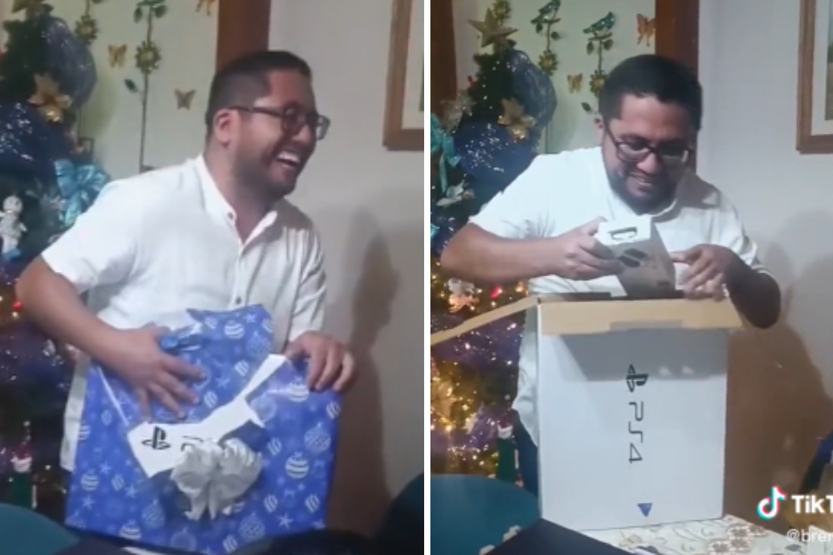 En el metraje compartido por ‘@brensc’ se observa cómo este se encuentra emocionado con la gran caja que parece ser lo que se encuentra envuelto en el papel de regalo. Una vez abierto, logra emocionarse en demasía pues aparentemente se trataba de un PlayStation 4.