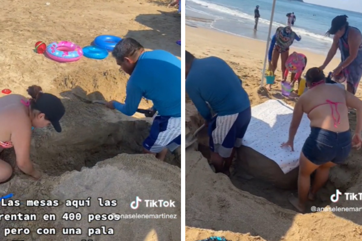 Provisto de algunas herramientas de mar como palas y baldes, empezaron a cavar en la fina arena de la playa de Ixtapa Zihuatanejo, en México. El fin era no tener que rentar una mesa portátil a los comerciantes de la zona que tiene un precio de 400 pesos mexicanos (20 dólares).