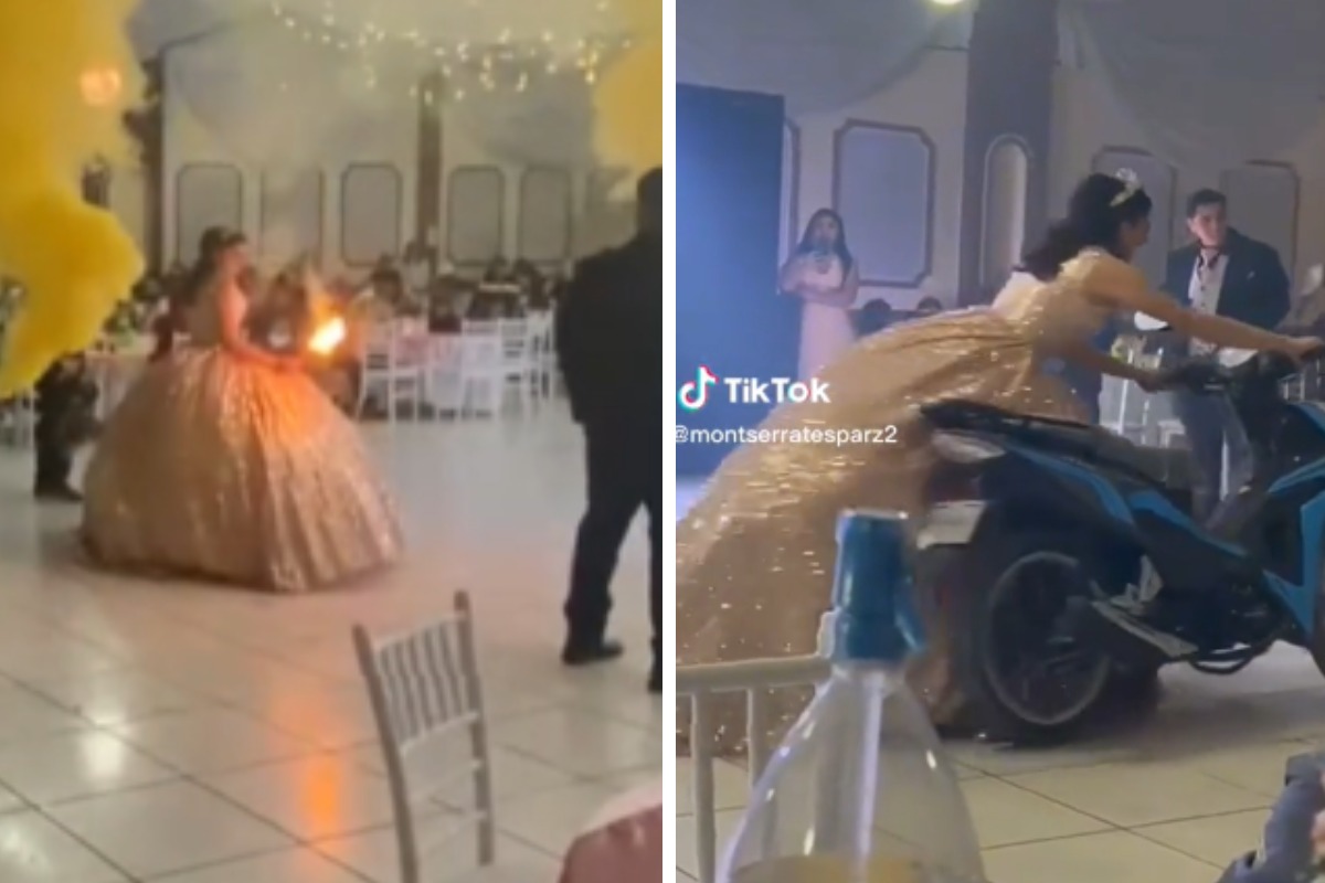 Lo que debió ser el día más feliz de su vida por poco y termina en una tragedia que lamentar. Una adolescente pasó más de un susto en el día de su quinceañero y es que sufrió un percance con su vestido y además estrelló una motocicleta que había recibido como regalo.