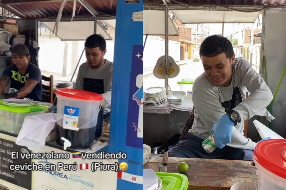 En el metraje aparece un supuesto cliente a preguntar por un plato de ceviche, a lo que el joven venezolano le consulta cómo lo quiere, pues tiene de conchas negras y mixto. “Mano, ¿tú eres venezolano?”, le pregunta el comprador, a lo que este responde: “Acá tengo que hablar así (como piurano) porque si no no vendo”, indica.
