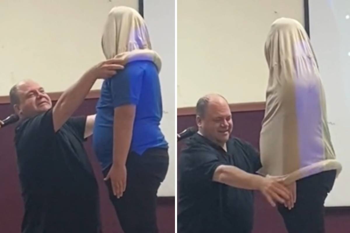 “Enseguida comienzo a colocarlo extendiéndolo hacia abajo. La forma del pene va a variar. Hay unos que son inclinados hacia atrás, otros son inclinados hacia arriba, hay otros que están de ladito. Finalmente esto que están viendo es una erección grado cuatro”, se logra escuchar en una parte del video donde además se aprecia la colaboración de un tercero que sujeta el micrófono al profesor.