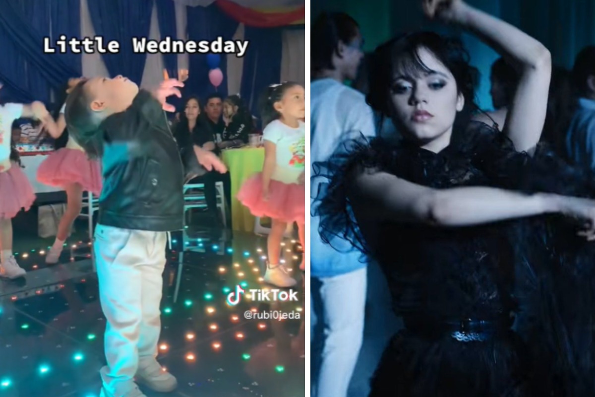 Si bien la mayoría de pequeños sigue unos pasos ensayados, un niño en particular llamó la atención al destacarse por su gran similitud a la hora de bailar con la del sombrío personaje interpretado por la actriz Jenna Ortega, como también destaca la nota del tiempo.