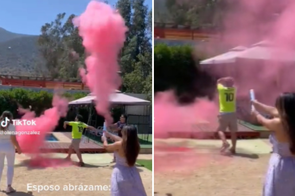 Como es sabido, en estas celebraciones, de salir un humo rosado se trata de una mujer, y en caso fuera de tono azul, se trataría de un varón. Así entonces, el hombre pateó la pelota con toda su fuerza y para su sorpresa, las partículas eran color rosa.