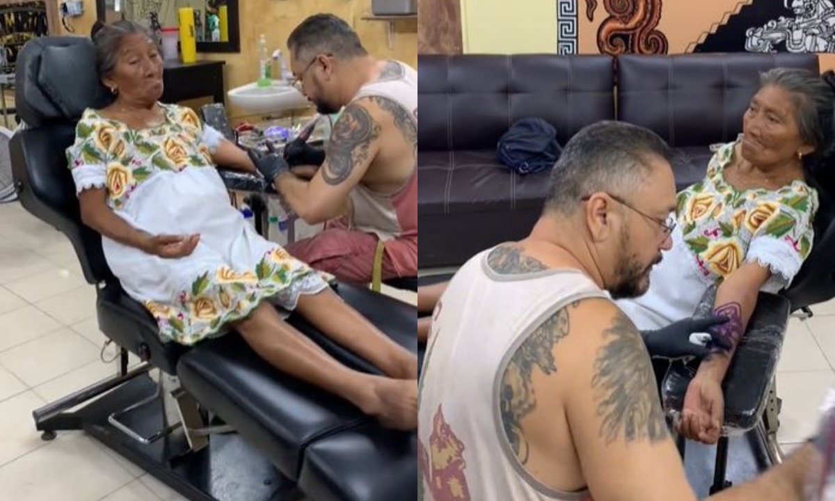 El clip fue compartido por Fredy Quiñones (@solmayatattootekax) quien dirige el Sol Maya Tattoo en Tekax, Yucatán (México) y nos muestra el trabajo que realiza en el brazo izquierdo de una anciana quien no se inmuta ante el paso incansable de las agujas.