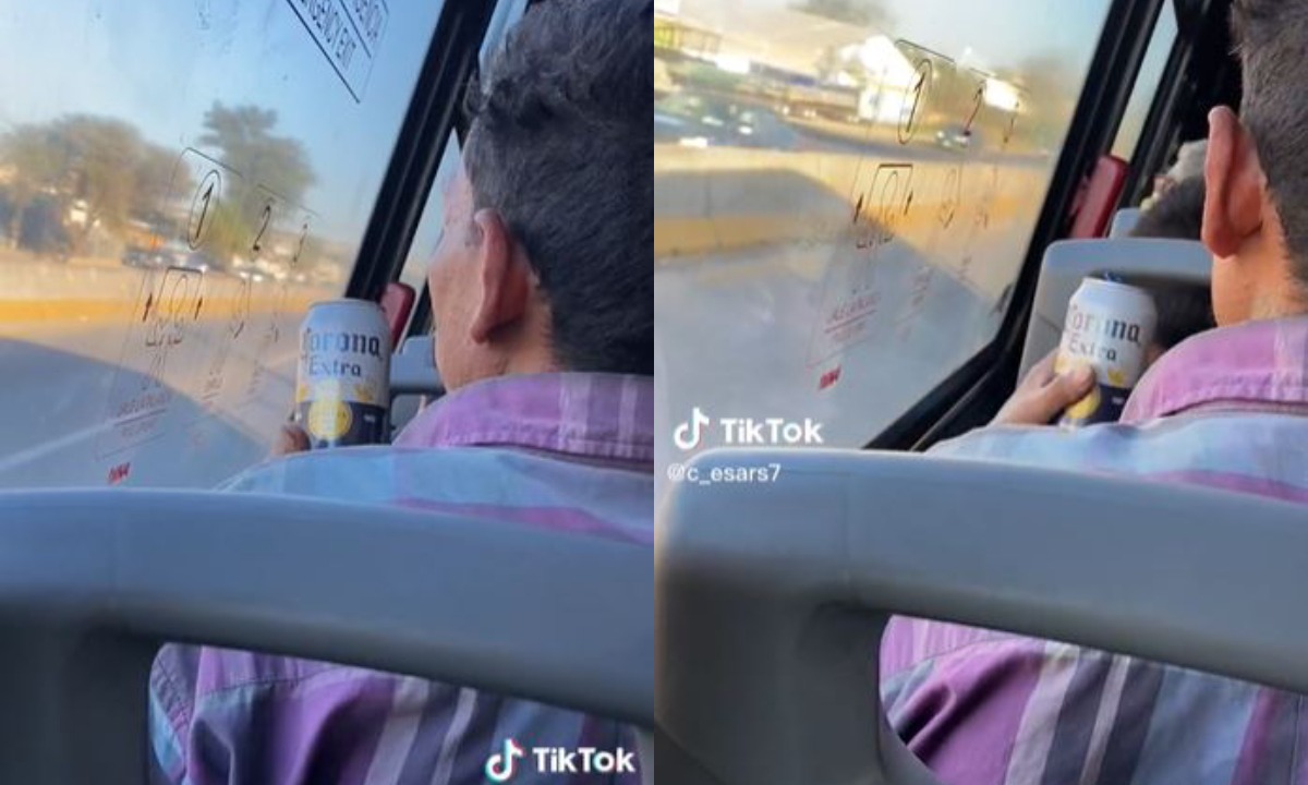 El alocado video fue compartido por César Vásquez Curiel (@c_esars7) quien se encontraba en el asiento trasero cuando notó a un sujeto con camisa de colores, con cabello corto quien sostenía una lata de cerveza Corona, al cual escuchamos dándole unos versos con mucha imaginación, pero también con mucho amor.