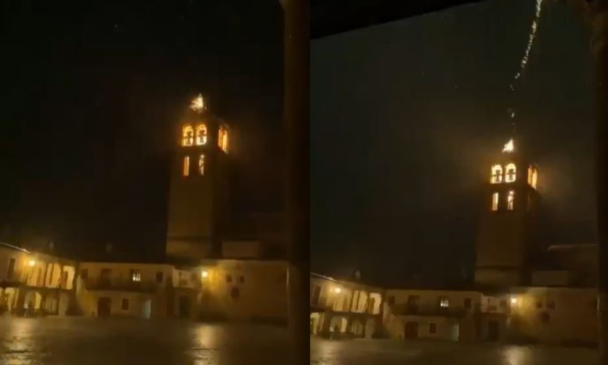 Y es que recientemente la cuenta de Javier (@donjbeltran) nos muestra la toma desde el patio de una iglesia en Pedraza, Segovia; es de noche, una intensa lluvia lo cubre todo cuando, de pronto, el cielo nocturno esclarece y, sin previo aviso, un rayo se estrella sobre la torre del templo, provocando que el interior de dicho espacio se ilumine por completo.