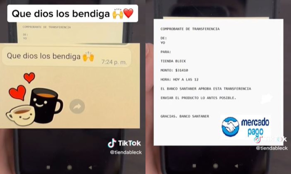 El caso tuvo lugar en la Tienda Bleck (@tiendableck) en Argentina y dice así: “¿ustedes se darían cuenta de que es falso?”, para luego mostrarnos el pantallazo de un supuesto comprobante de pago donde, entre otras cosas, se lee: “de: yo, para: Tienda Bleck... hora: hoy a las 12″, en cuanto a la entidad bancaria, el sujeto no tuvo mucha astucia para armar su timo: “El Banco Santaner (es Santander) aprueba esta transferencia”.
