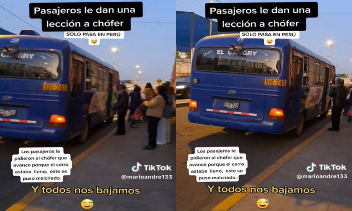 Esto no sería nada raro hasta que el propio Mario nos los cuenta en la descripción del video: “pasajeros le dan una lección al chofer... los pasajeros le pidieron al chofer que avance porque el carro estaba lleno, este (el conductor) se puso malcriado”, tras lo cual muchos dentro del bus tomaron una radical decisión: “y todos nos bajamos”.