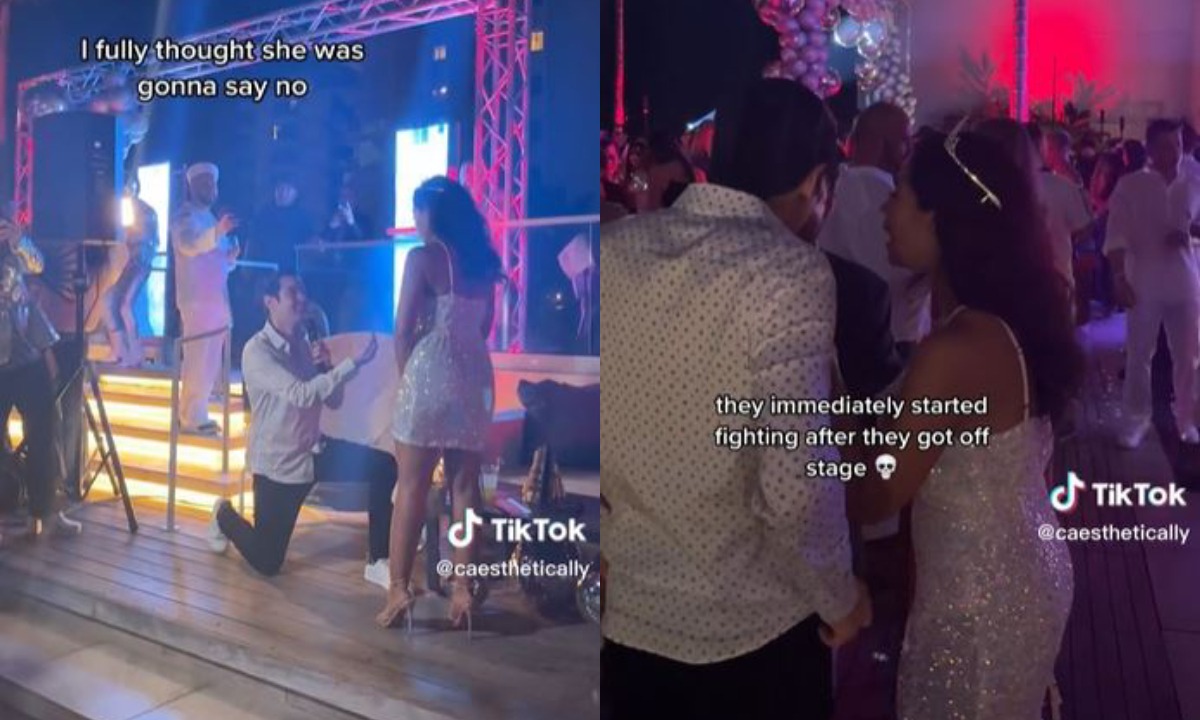 Un hombre estaba en medio de las celebraciones de Año Nuevo al lado de su novia, pero decidió darle la sorpresa de su vida cuando, delante de cientos extraños, le propuso matrimonio, pero la muchacha, lejos de emocionarse, se mostró incrédula, al punto que no respondió de inmediato cuando le pidieron la mano, momento que dejó perplejos a miles cuando el video se hizo viral en TikTok.