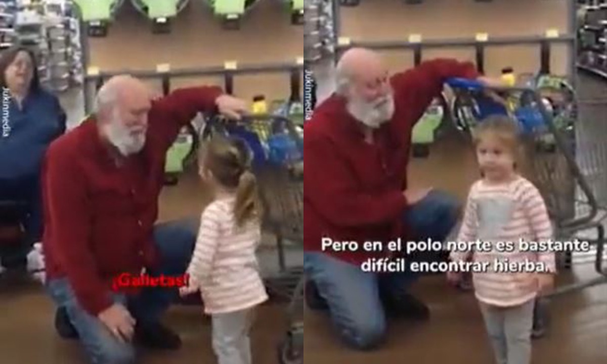 Al notar la emoción de la tierna niña, el abuelito se pone de rodillas y le pide que se acerque, ella pregunta si es Papá Noel, a lo que el hombre, sin dejar sonreír, responde: “me han dicho cosas peores... ¿has sido una buena niña este año?”, a lo que ella le muestra sus uñas delineadas.