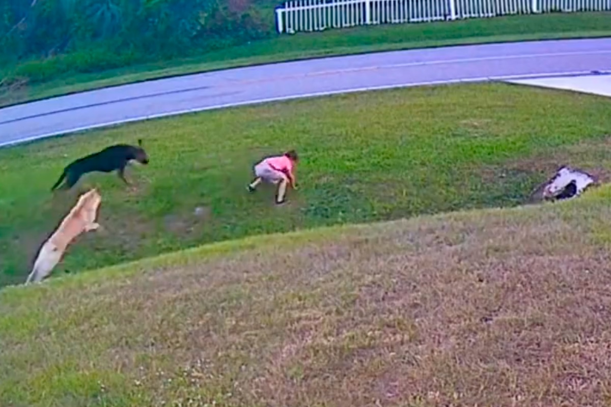 El perro intenta acercarse más al pequeño; sin embargo, es perseguido por la mascota del menor, quien lo corretea y ataca para que no le haga daño a su dueño, mientras este huye hasta encontrar con una persona que no alcanza a captar la cámara. Es allí, donde al parecer el dueño del otro animal aparece en escena y lo atrapa y se lo lleva.