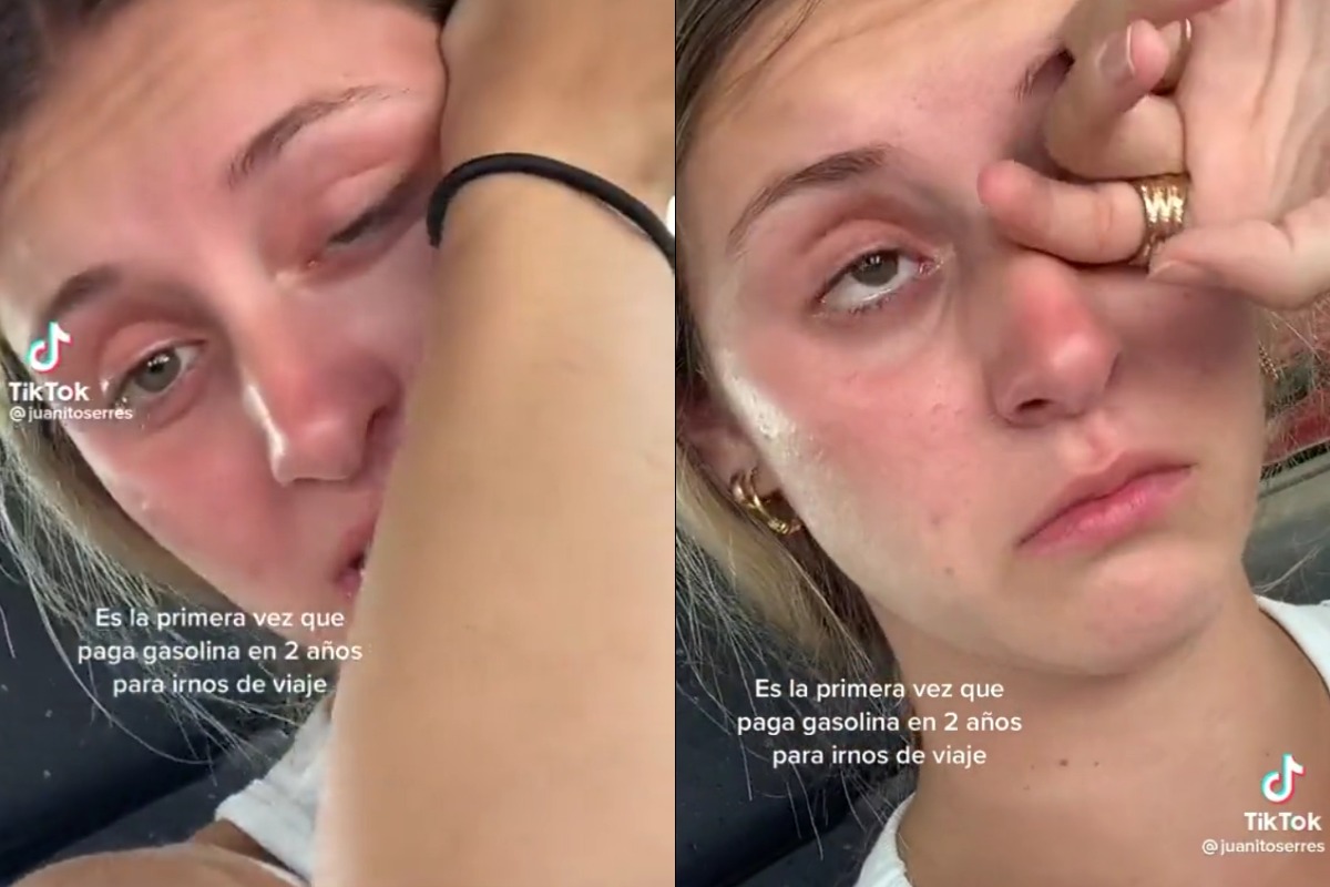 El video fue publicado en TikTok por el usuario @juanitoserres y se ve como la copiloto se asombra y se pone a llorar al desembolsar dinero para el combustible del coche en el cual se va de vacaciones. “¿Pero por qué lloras?”, le pregunta su pareja.