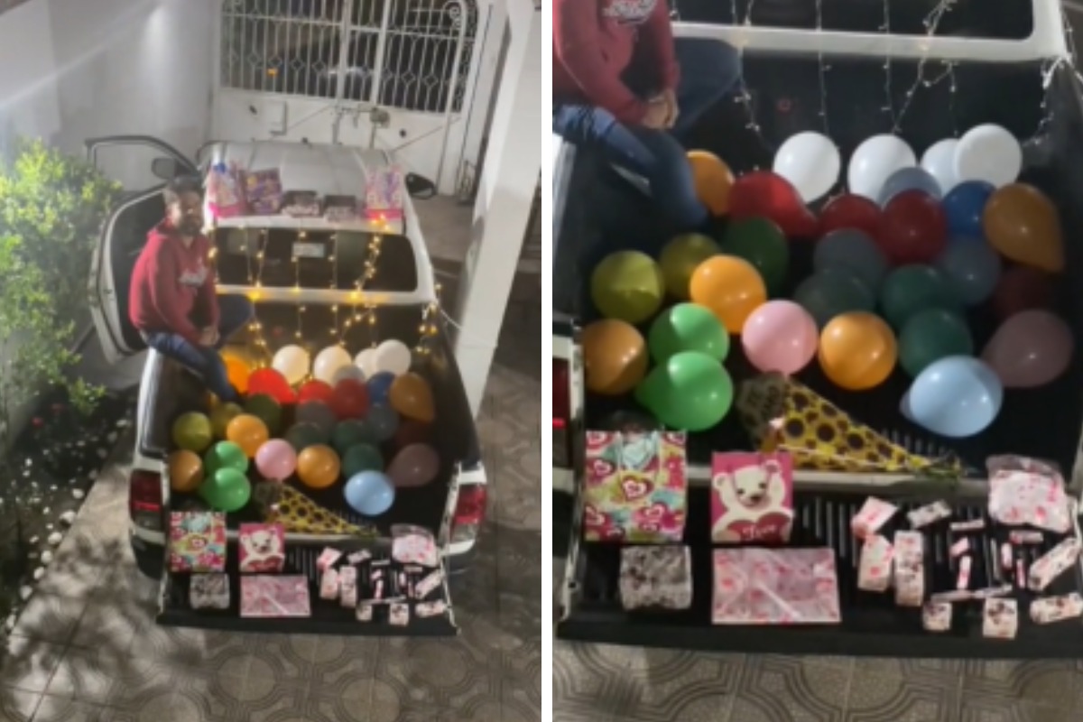 Así lo destacó la tiktoker en el video subido a su perfil ‘@aimeeortega2′. En este se observa al hombre con una camioneta lleno de 29 obsequios en la parte posterior, todos de diferentes tamaños y con múltiples decoraciones que adornaban el día de su amada.