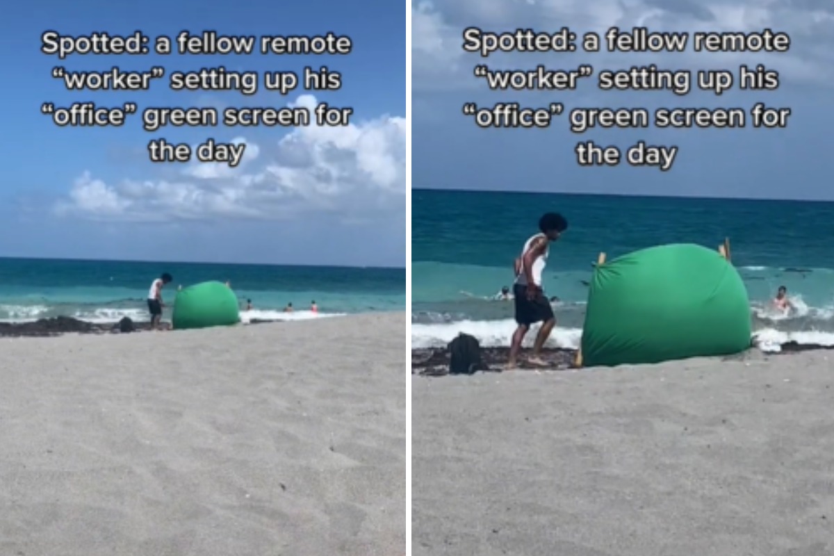 Ese ha sido el caso de un reciente viral que viene ganando notoriedad en redes sociales. En este se ve como un joven no desea echar a perder su día de playa, pero tampoco sus funciones, en ese sentido, tuvo la original idea de instalar una pantalla verde (o croma key) para conectarse probablemente al trabajo, como también destaca ‘La Vanguardia’.