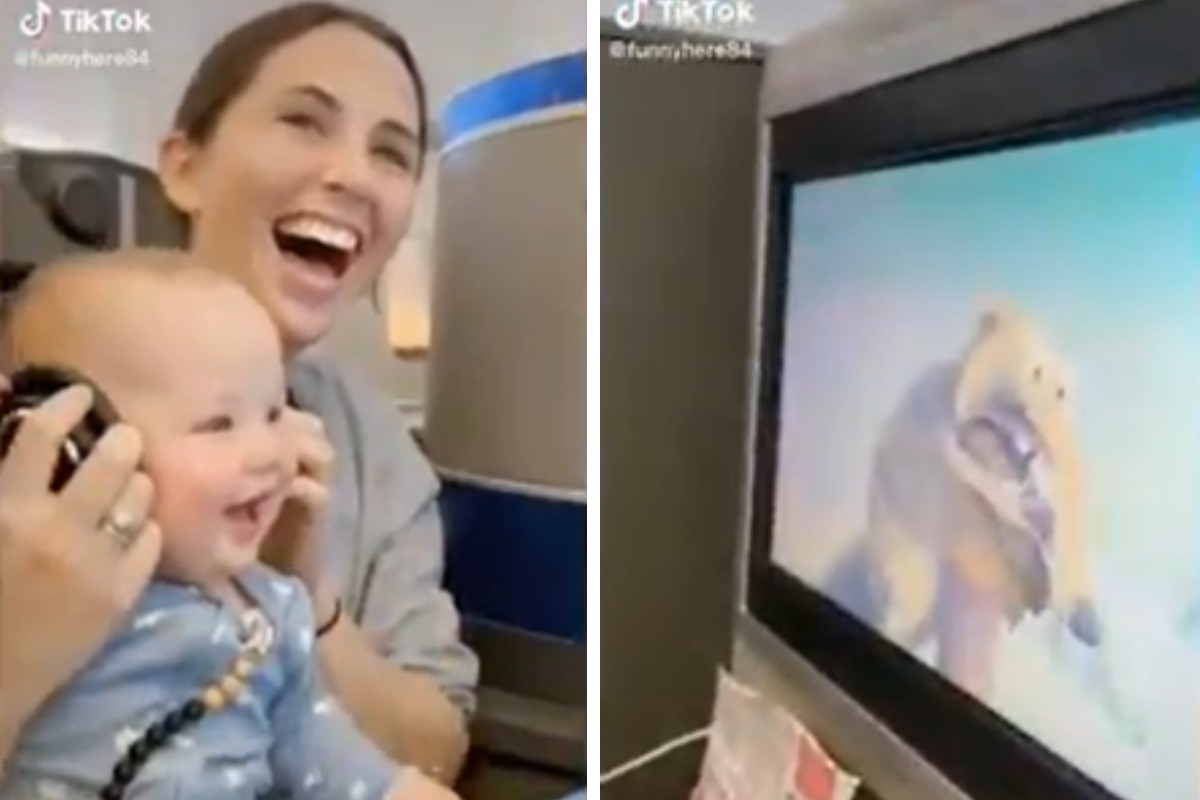En el video compartido por el perfil de TikTok ‘@funnyhere840′ y replicado también por ‘La Sexta’ se observa como el infante viaja entre risas junto a su progenitora, evitando así que pueda estresarse y llorar dentro del pájaro de acero.