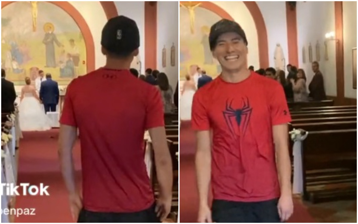 Luego de la sorprendente revelación, el joven solo atinó a reírse y marcharse. En las imágenes se puede ver que el hecho dejó atónitos a la pareja de novios, a sus invitados y hasta al propio cura.