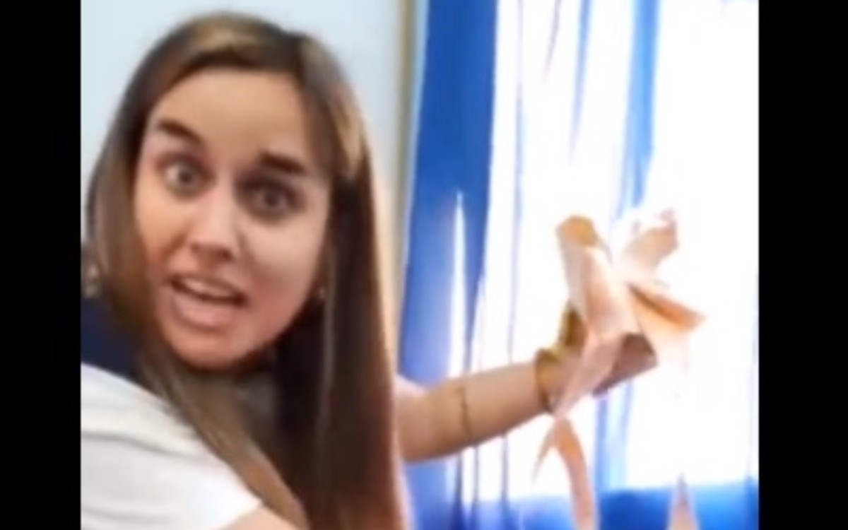 En las imágenes se puede observar el instante en que la “seño Paula”, profesora del segundo grado del Colegio San Antonio María de Gianelli, abre una caja que habían dejado en su escritorio.