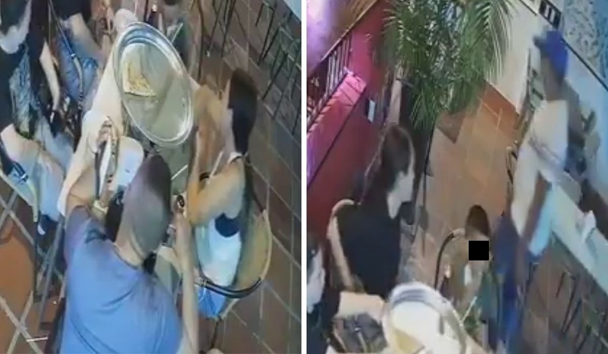 Una cámara de seguridad (CCTV) ubicada en un restaurante de Cartagena, Colombia, captó el momento en que un hampón asalta a una familia de vacaciones que cenaba en la parte externa del local. Las tomas fueron difundidas recientemente en Twitter, donde se volvieron virales.