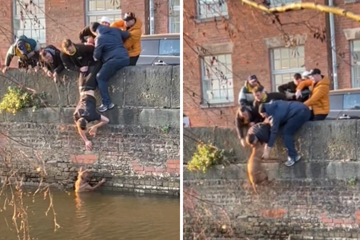 Un perro corría el riesgo de morir ahogado luego de caer en un arroyo, varios metros abajo de la calzada peatonal, por lo que un grupo de personas de buen corazón se inscribió en la solidaria tarea de rescatarlo.