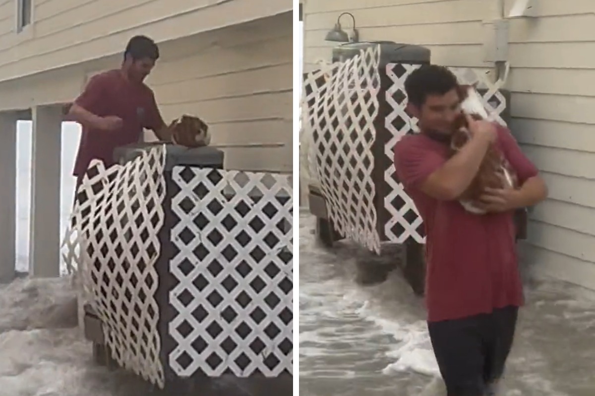 En el clip fue compartido por la misma novia del joven en su cuenta de Twitter ‘@MeganScavo’, destacando su valentía y también el profundo amor por los animales y su protección ahora cuando más se necesita en la zona cero del fenómeno climatológico.