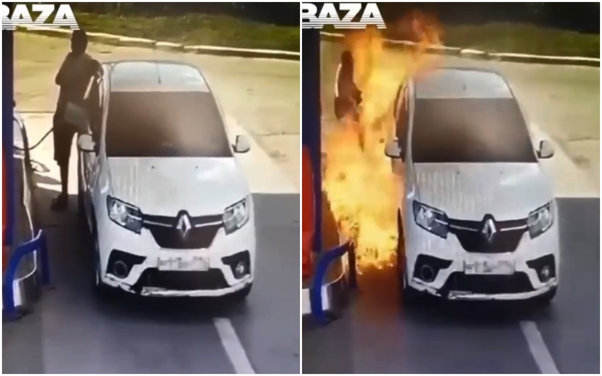 Una cámara de seguridad registró el momento en que el conductor de un auto provoca un incendio, luego de encender un cigarro mientras cargaba combustible.