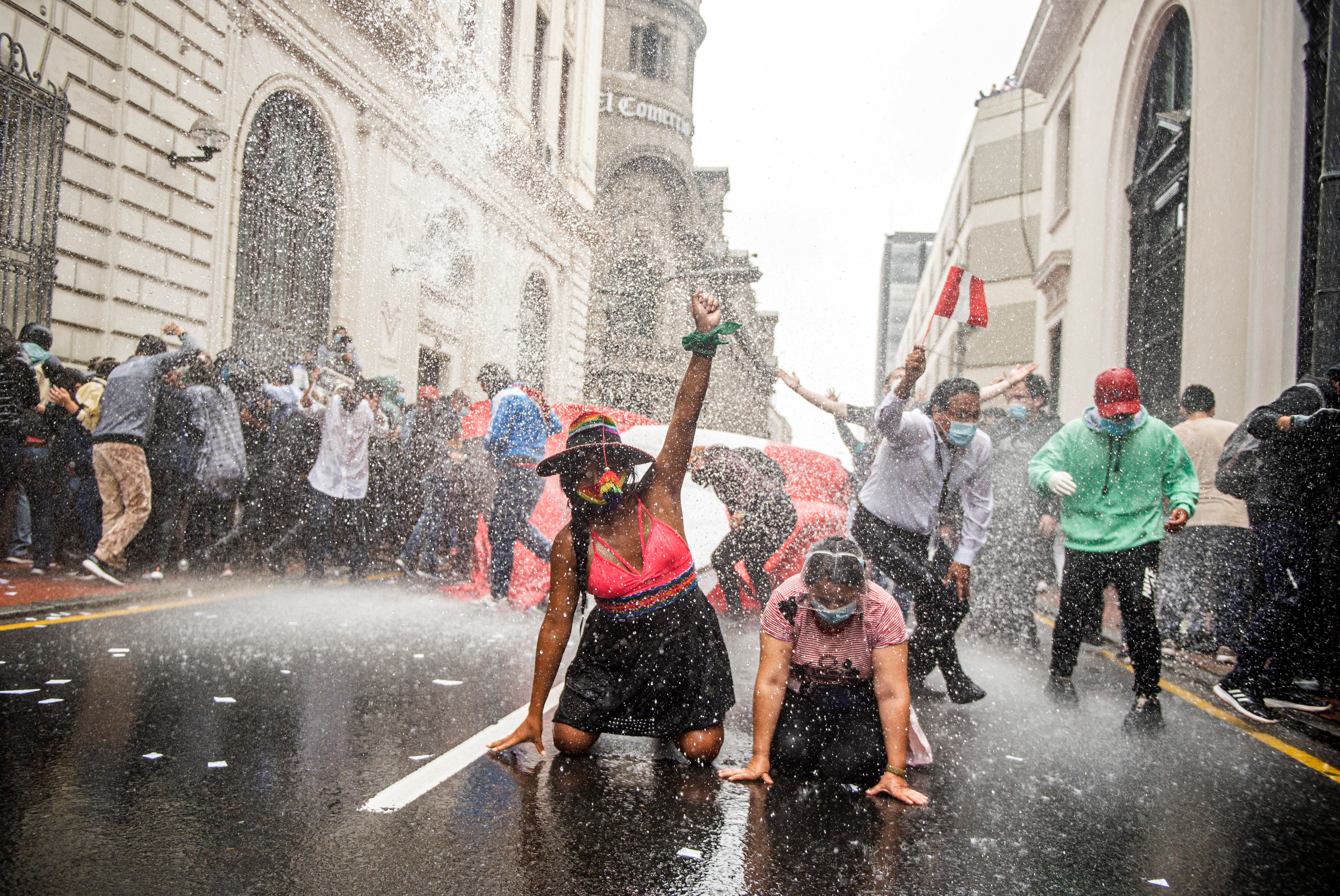 Además, los agentes intervinieron a algunas personas y las trasladaron en patrulleros a comisarías cercanas. En los alrededores de la plaza San Martín se ubicaron varios contingentes de la PNP para impedir que los protestantes lleguen a Palacio de Gobierno y a la sede del Congreso de la República.
