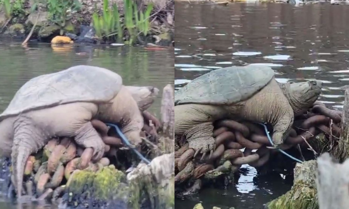 Una enorme tortuga mordedora se ha vuelto la principal atracción en un río de los Estados Unidos, entre otras cosas, por su apariencia que para muchos se parece a un animal sacado de épocas jurásicas, por lo que en las redes sociales lo bautizaron como “Chonkosaurus” una vez que su aspecto se hiciera viral.