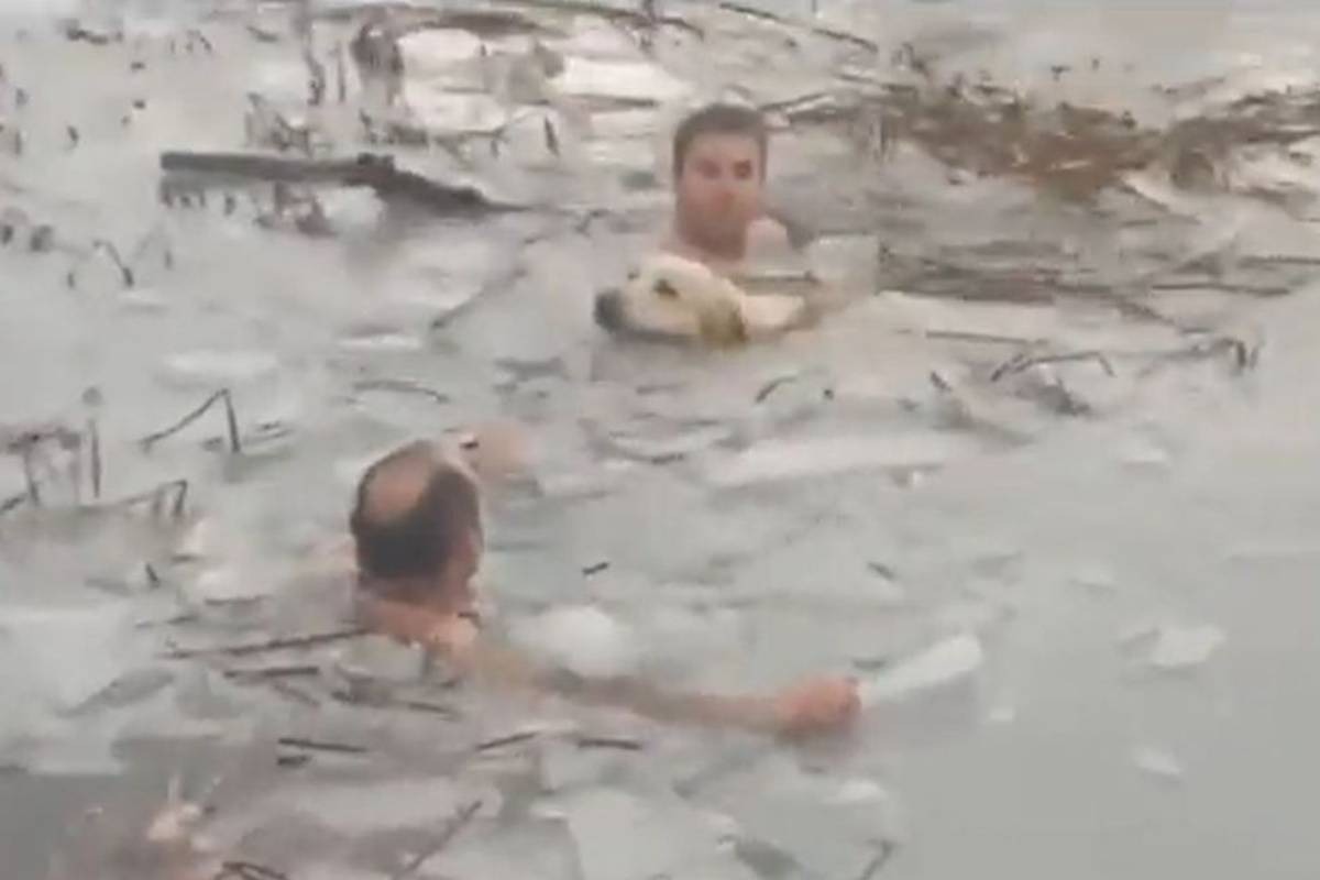 Una vez conocida la situación, los efectivos no dudaron un solo momento para quitarse las ropas y arrojarse hacia las frías aguas. Utilizaron un tronco de madera para poder abrirse paso en medio del hielo y avanzar alrededor de 10 metros hasta el lugar donde se encontraba el temeroso can.