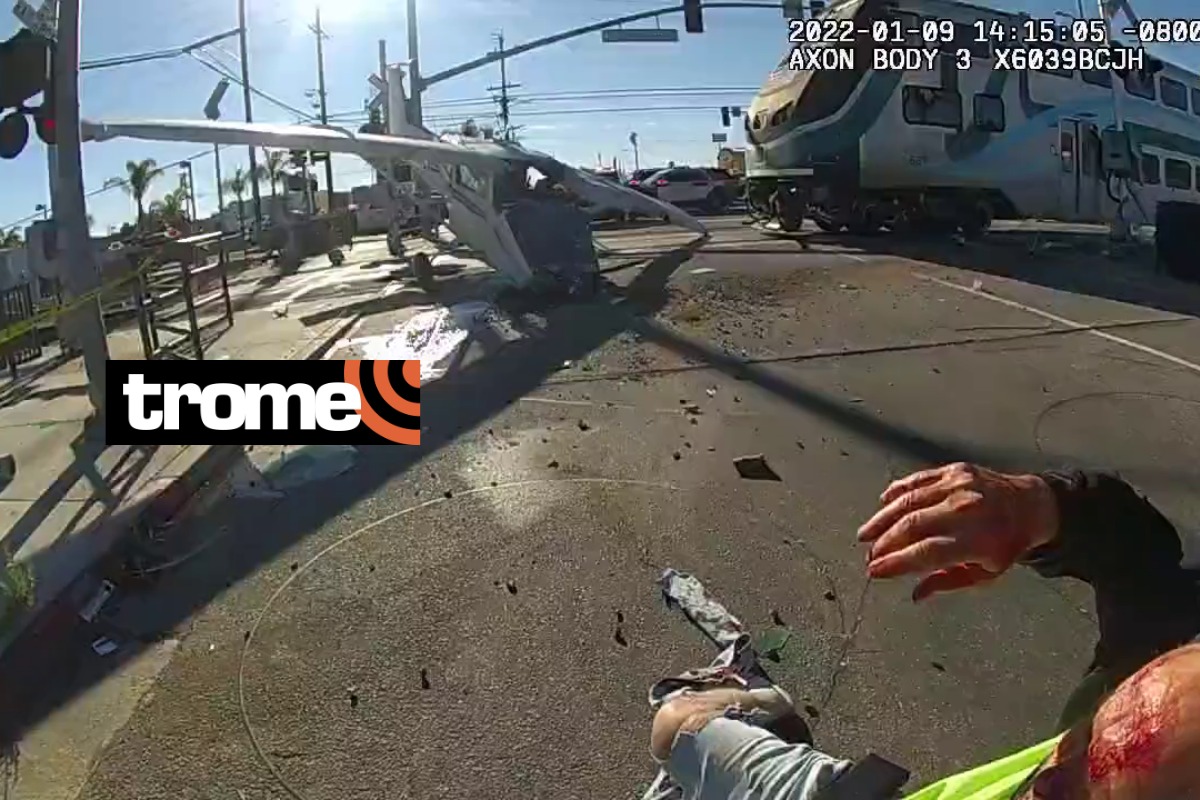 La víctima, que hasta el momento no ha sido identificada, se encontraba apenas consciente cuando las fuerzas policiales arribaron a la escena y tenía tanto su rostro como su ropa manchada de sangre. En las imágenes se observa cómo los agentes intentan sacar al hombre de la aeronave mientras un ferrocarril se aproximaba a toda velocidad por los rieles, precisó el portal LAD Bible.