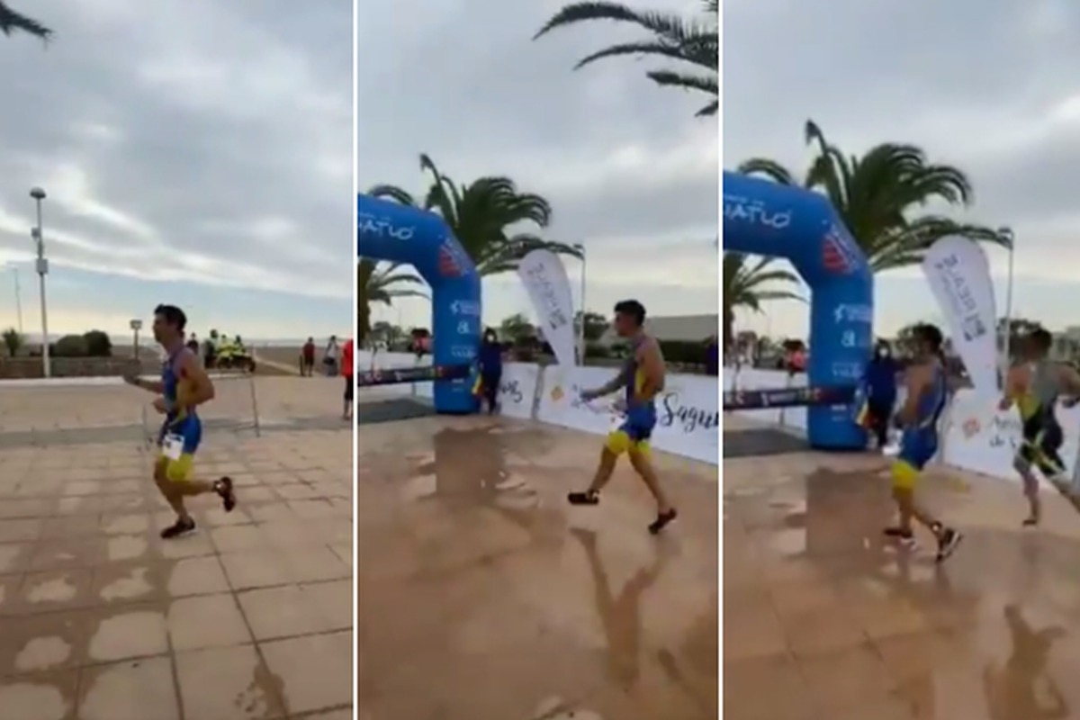 Mientras él festejaba antes de tiempo, Germán Cister, del Club Triatlón TriCanet, hizo un último esfuerzo para correr lo más rápido posible y acabó ganando la carrera, dejando al protagonista del video viral en segundo lugar.