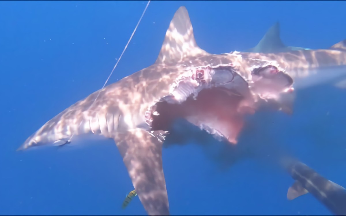 Video de tiburón que seguía nadando tras perder la mitad de su cuerpo