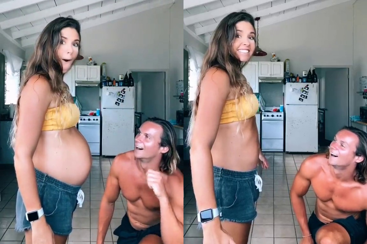 En las imágenes compartidas en TikTok, la influencer Megan Elizabeth Call de Oahu, Hawái, “desinfla” su abdomen cuando estaba embarazada de la segunda de sus hijas frente a la atónita mirada de su esposo, después que con un movimiento de sus manos simulara remover una especie de tapón de su ombligo, observa cómo vuelve a la normalidad.