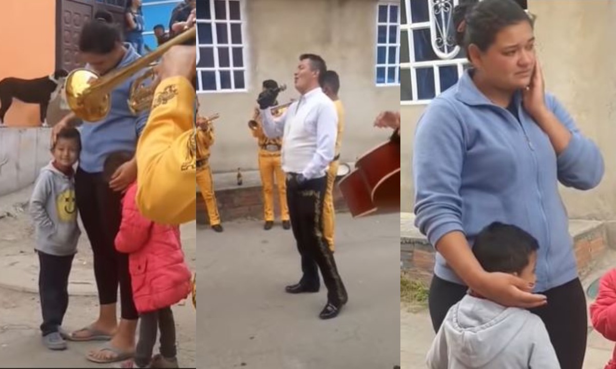 Tras sellar el “contrato”, el hombre que carga el “guitarrón” llegó a convencer a la mamá del niño para que se animara a salir para que, finalmente, le dedicaran un par de canciones, tal y como deseaba su hijito.