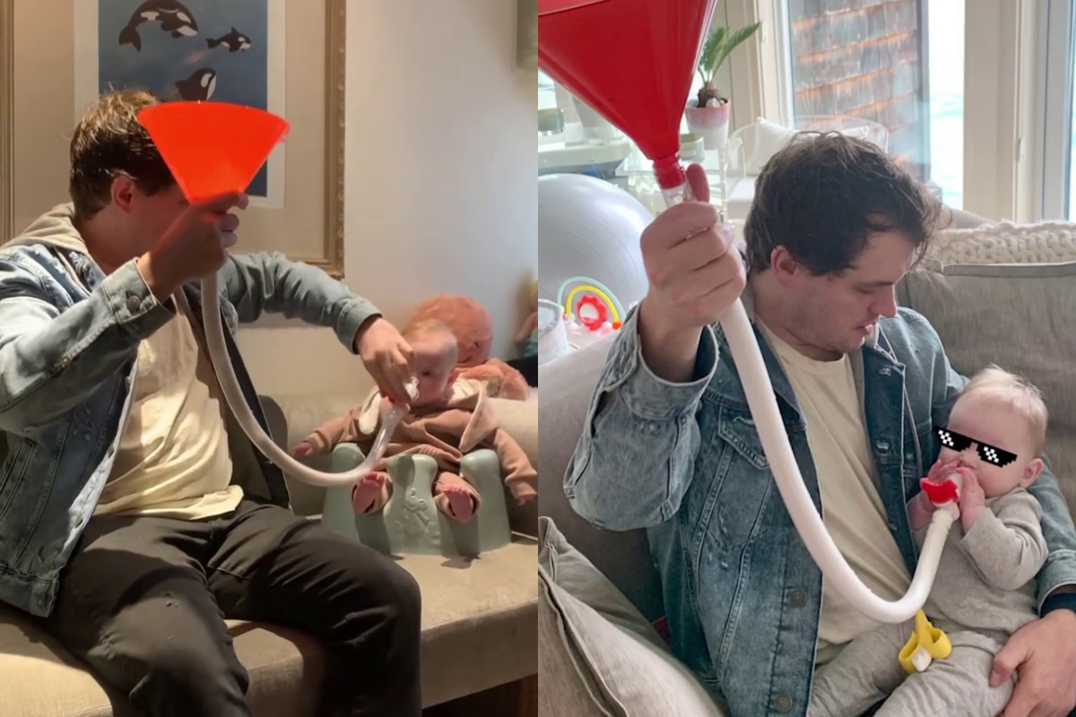 Lo más gracioso es que la bebé del video viral luce seriamente impresionada por todo lo que tiene que hacer su padre para que pueda tomar su biberón. “Funcionó para mí en la universidad, debería funcionara para ella también, ¿verdad?”, se lee en el mensaje que adjuntó con la publicación de Instagram.