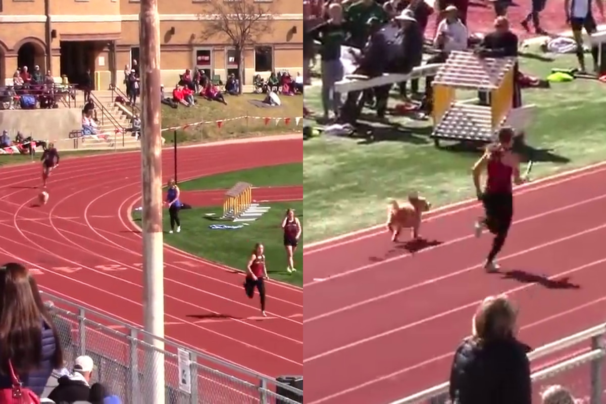 “¡En el Invitacional Grizzly, un cachorro se metió para desafiar a las corredoras en los relevos 4x200m!”, se lee en la descripción del video viral compartido el pasado 19 de abril en YouTube por el canal MileSplit en el que se observa a una perrita llamada ‘Holly’ se mete en la pista atlética tras un descuido de sus dueños.