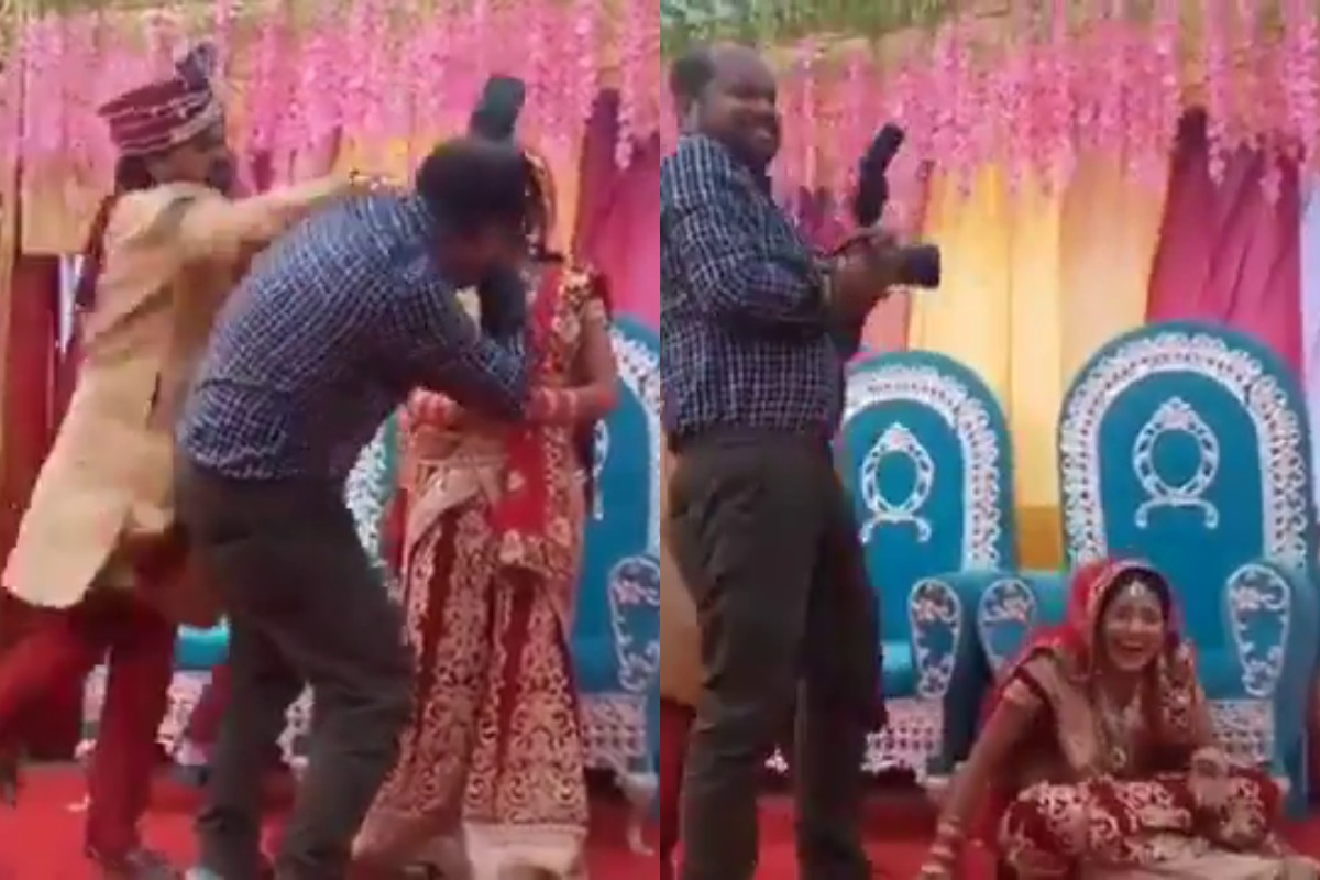 Sin pensarlo dos veces, el hombre golpeó al fotógrafo en la espalda para advertirle que no se propasara y le pidió que se bajara del escenario, algo que acabó sorprendiendo a este último y provocando un incontrolable ataque de risa en la novia, que solo atinó a sentarse en el suelo soltando varias carcajadas e intentando recuperar la compostura, mientras el novio emprendió la retirada del lugar.