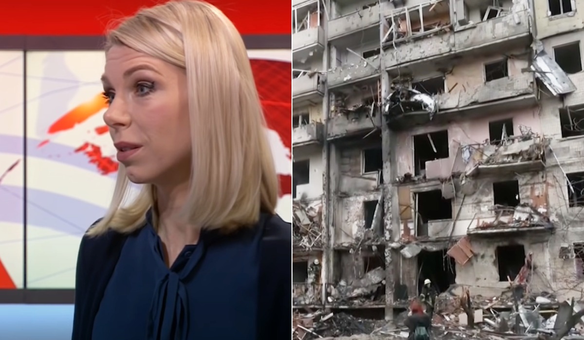 Segundos después, el mencionado medio emitió imágenes de un bloque de pisos destrozado por el ataque del ejército ruso. En ese momento, Giannone le preguntó a Malchevska “¿y ese es literalmente el edificio del que hemos estado hablando que ha sido destruido?”.