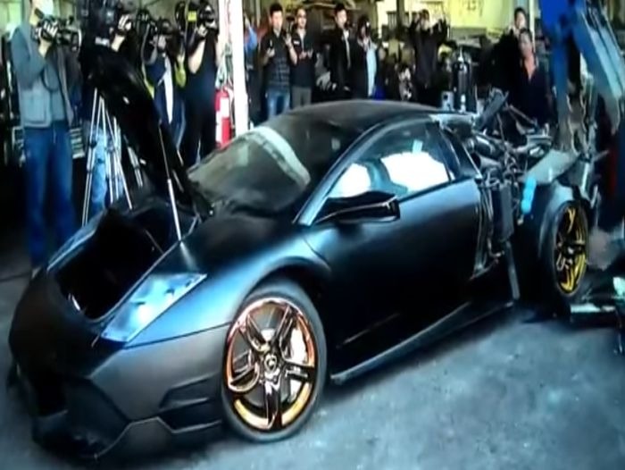Justo en el Kokoro. Un lamborguini Murciélago tiene un precio de más de medio millón de dólares y fue destruido por la policía de Taiwán porque el vehículo contaba con placas falsificadas. La destrucción del auto se convirtió en parte de los videos virales de YouTube más compartidos este fin de semana.