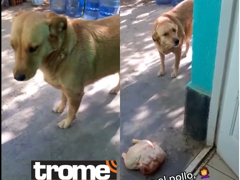 “¿A quién le afanaste (robaste) ese pollo?, alguien que está por hacer asado”, pregunta la dueña, mientras el perrito mueve la cola mostrando felicidad.