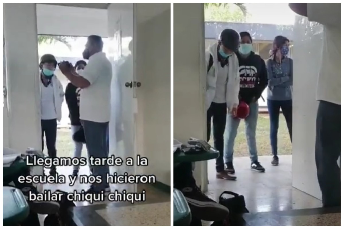 La popular canción ‘My Name Is Chicky’ es la pieza principal del castigo, ya que, el profesor al observar la falta cometida por los estudiantes decidió hacer que bailen la tan conocida coreografía del éxito mundial y que es viral en TikTok. El hecho fue presenciado por todos sus compañeros del salón de clases al hacer que bailen en la puerta de ingreso al aula.