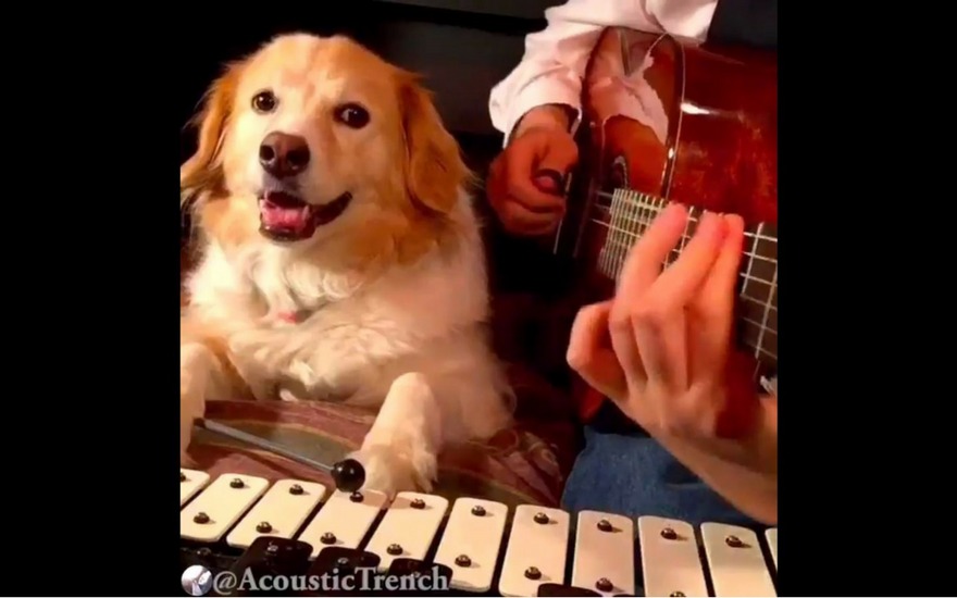 En los videos subidos a la cuenta de Twitter de 'AcousticTrench' se puede observar al lindo perrito acompañando a su dueño, mientras interpretan covers de otros artistas o hasta canciones propias.