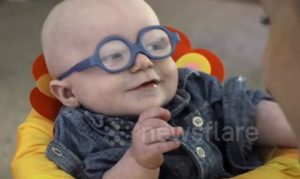 En las imágenes publicadas por el canal “NewsflareBreaking” en YouTube se ve que el bebé Leo Repponds, quien sufre de una rara enfermedad, recibe unos anteojos especiales para ver mejor.