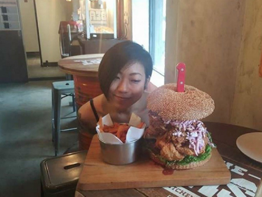 Thomasina decidió pasar el reto denominado ‘The Beast Burger Challenge’ que tienen el en el restaurante ‘The Beast Burger’, ubicado en Singapur. El reto que ella debía pasar era el siguiente: comer una hamburguesa de 3.2 kilos con ensalada.