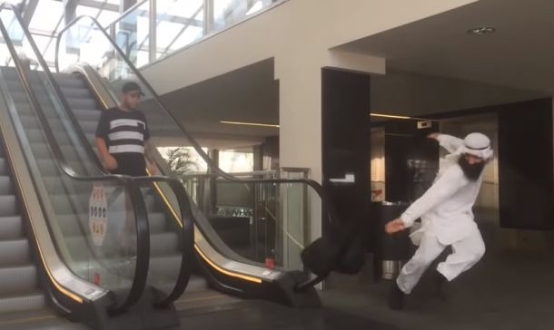 Un video subido a YouTube muestra una serie de bromas que juega un falso musulmán que, ataviado con túnica, turbante y una barda notoriamente postiza, se dedica a causar pavor a diversos transeúntes arrojándoles un maletín en el que se supone hay un gran explosivos.