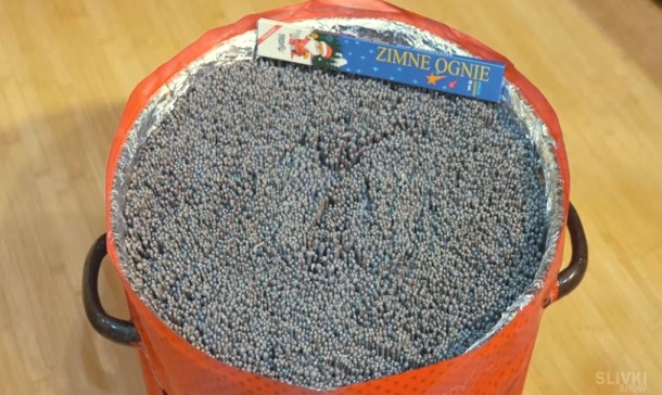 En las imágenes de YouTube se puede ver el procedimiento. El blogger comrpó alrededor de 50 kilos de bengalas y las acumuló, luego las colocó en un balde que acondicionó con papel aluminio y arena, con la finalidad que las ‘chispitas mariposas’ no exploten indiscriminadamente.