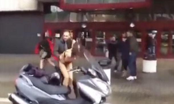 La mujer, quien se mostró avergonzada por estar desnuda, regresó a la motocicleta donde su pareja la cubrió con su chaqueta.